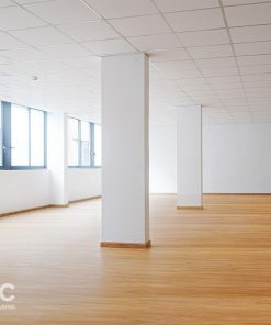 Khu vực văn phòng được hoàn thiện bằng sàn gạch men xám, sàn gỗ hoặc thảm, dễ dàng decor và giữ không gian luôn sạch sẽ, chuyên nghiệp.