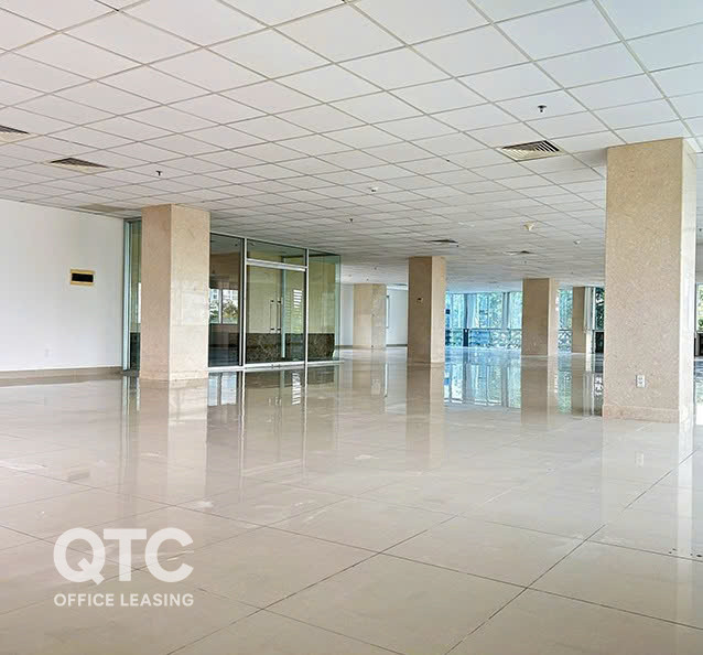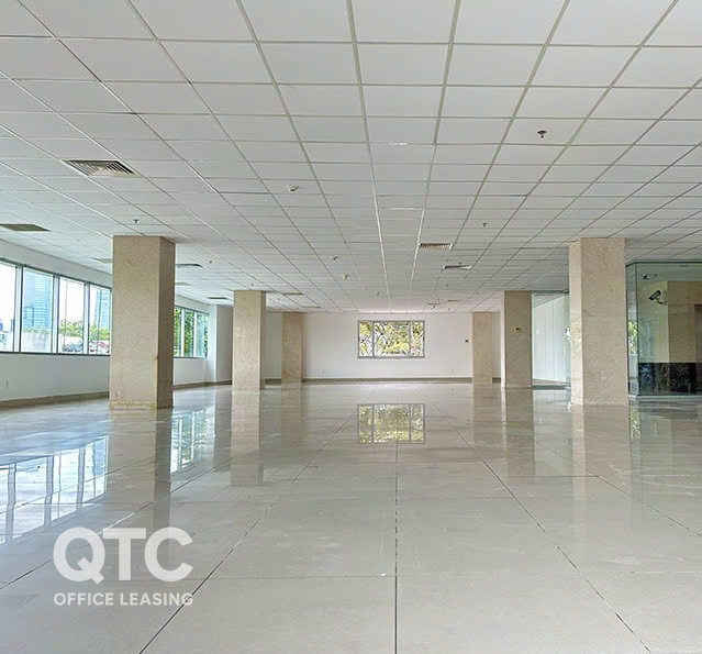 Sàn văn phòng được lát bằng gạch ceramic cao cấp, hệ thống điện và cáp viễn thông âm trần được bố trí gọn gàng, tạo không gian chuyên nghiệp, hiện đại và tiện nghi.
